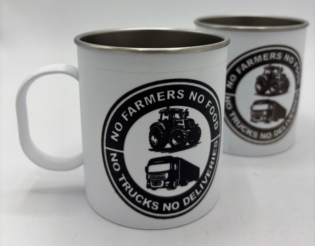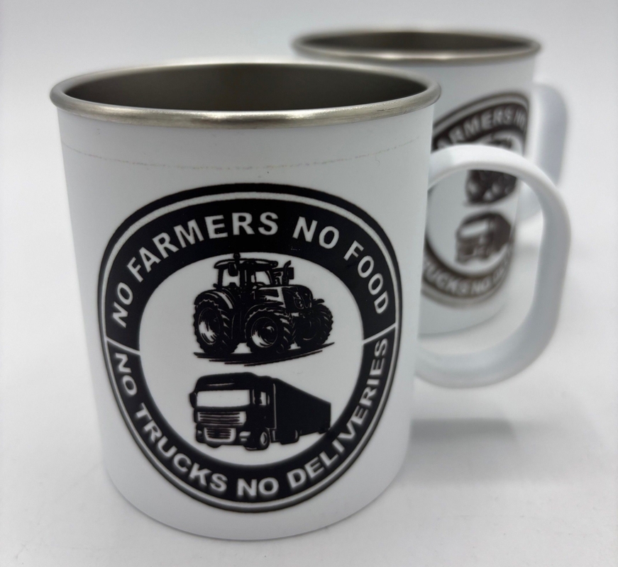 > Coffee cup stainless steel white 330 ml. No farms / No trus