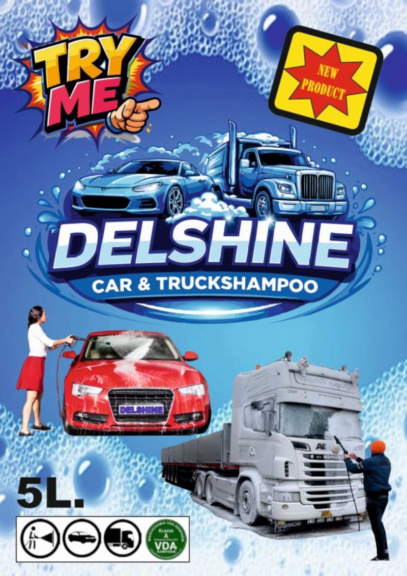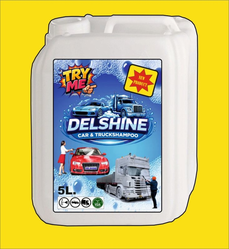 "DELSHINE IS AN ALKANIC CLEANER WITH UNPARALLELED SOAKING POWER AND LEAVES A BEAUTIFUL SHINE ON ALL SURFACES!CONTAINS CORROSION INHIBITORS AND IS BIODEGRADABLEDOSAGE: DILUTE 1 TO 4% WITH WATERRINSE OFF WITH A HIGH-PRESSURE CLEANER FROM BOTTOM TO TOP Product Description Delshine Car & Truck Shampoo is a concentrated alkaline cleaner with moderate foaming action and unique soaking power. Features Suitable for cleaning all vehicles. Suitable for use with hard water. Contains corrosion inhibitors and leaves a shine on the vehicle after cleaning. Instructions for Use Dosage: 1-4% Apply the correct dosage from bottom to top. Allow to soak in. Rinse thoroughly under high pressure. Specifications Physical state Liquid Color Clear. Brown. pH approx. 11.5 (1%) Density approx. 1.08 kg/l Solubility in water 100% Storage and Disposal Store only in the original container in a cool, well-ventilated area. Keep the container closed when the product is not in use. Do not store in metal containers susceptible to corrosion. Protect from freezing. Storage temperature: < 50 °C. Dispose of safely in accordance with local/national guidelines. Safety instructions for the user Never use in direct sunlight, on delicate, alkali-sensitive, or hot surfaces. Never allow to dry. Keep out of reach of children. Avoid contact with eyes. In case of eye contact, rinse immediately with plenty of water. Seek medical attention immediately. If inhaled, move the person to fresh air and ensure they can breathe easily. Consult a doctor immediately. In case of skin contact, remove contaminatedTranslated with DeepL.com (free version) "