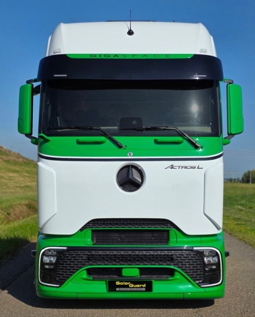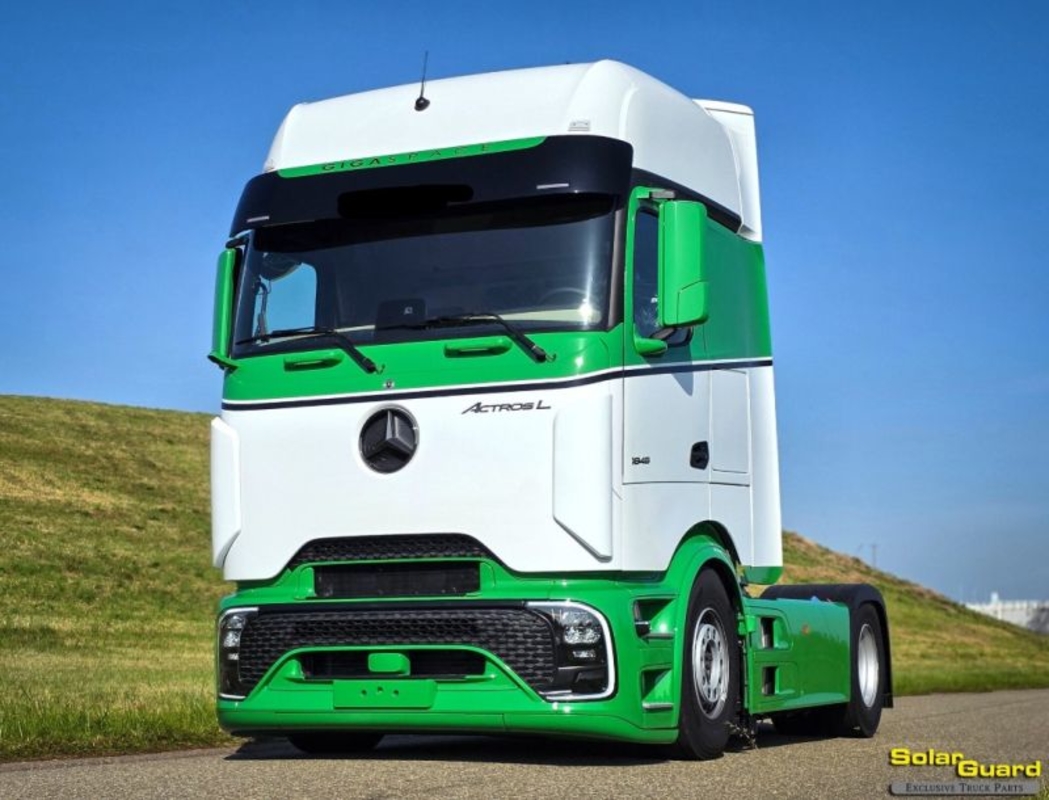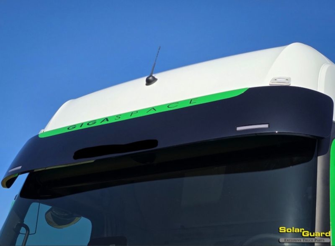"2 HOLES for position lamps Mercedes-Benz Actros Pro Cab Sun Visor Type 1 The Mercedes-Benz Actros Pro Cab Sun Visor Type 1 is expertly crafted to seamlessly complement the Mercedes-Benz Actros Pro Cab, enhancing both its aesthetics and functionality. Why choose this sun visor? Investing in the Mercedes-Benz Actros Pro Cab Sun Visor Type 1 means choosing a product that combines style and functionality. This sun visor not only enhances the appearance of your truck but also provides essential protection from harsh sunlight, reduces glare, and improves driver comfort. Product Details: Design: Custom-made with an OEM+ look, ensuring a perfect fit for the Mercedes-Benz Actros Pro Cab. Installation: Easy to install for a hassle-free experience, saving you time and effort. Important Information: Please test fit the product before painting to ensure a perfect fit. Thoroughly inspect the product for damage upon delivery and report any issues before signing for the package to ensure a smooth and satisfying experience"