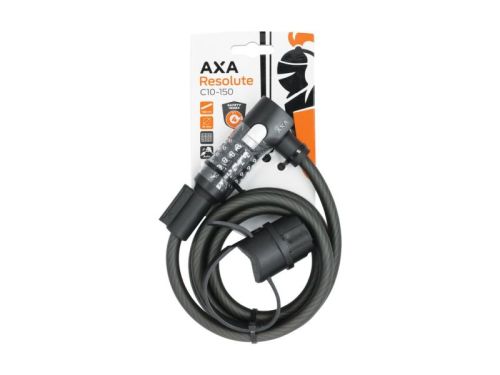"L'Axa Resolute C10-150 est un verrou à câble moderne, excellent pour une utilisation de courte durée ou une protection supplémentaire de votre vélo. • Longueur 150 cm • Diamètre du câble Ø 10 mm • Détails luxueux en acier inoxydable et cache-câble en finition mate"