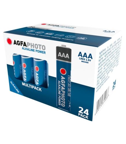 "Piles alcalines AAA LR03, lot de 24 Une alimentation fiable et durable pour tous vos appareils Choisissez le lot de 24 piles alcalines AgfaPhoto PLUS AAA, la solution idéale pour une alimentation longue durée. Les piles alcalines AgfaPhoto PLUS AAA (LR03) sont conçues pour répondre aux besoins énergétiques de vos appareils du quotidien. Ce lot abordable de 24 piles fournit une alimentation puissante et constante pour vos télécommandes, jouets, lampes de poche, appareils photo numériques et autres appareils électroniques. Grâce à leur technologie alcaline avancée, ces piles durent plus longtemps et offrent des performances optimales, pour une utilisation continue de vos appareils."