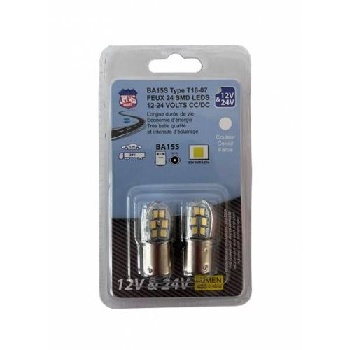 Ampoule 24LED blanc BA15S 12V/24V 480Lumen (2pièces)