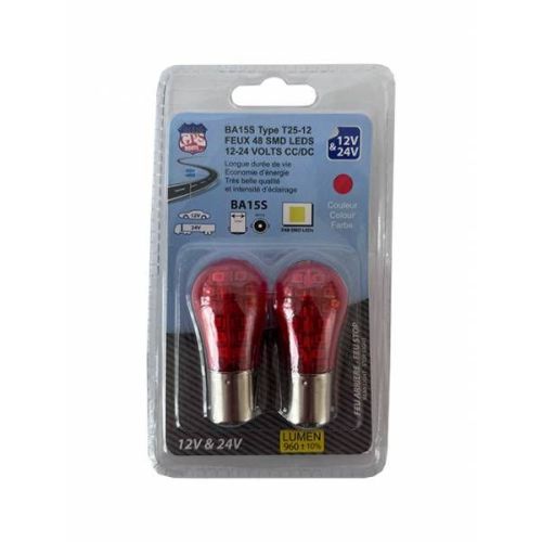 Ampoule 48LED rouge BA15S 12V/24V 960Lumen (2pièces)