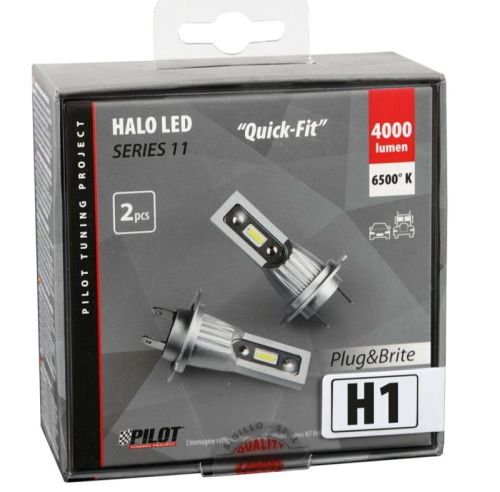 "• 12-24V Halo Led Serie 11 Quick-Fit - (H1) - 15W - P14,5s - 2 pcs - Boite • Super-luminosité. Les lumens dépassent les ampoules halogènes, tandis que la distribution lumineuse correspond aux ampoules d'origine. • Installation facile sans aucune modification des lampes. • Puces led spéciales de dernière génération. Lumière brillante extraordinaire, longue durée de vie. • Dissipation thermique sans ventilateur. • Technologie froide, sans besoin de ventilation ni de dissipateurs thermiques supplémentaires. • Longue durée de vie (25.000 heures). NON APPROUVÉ POUR UNE UTILISATION SUR ROUTE. Ces ampoules ne sont pas homologuées pour la route et doivent être utilisées à des fins décoratives, pour la compétition, le circuit et le tout-terrain uniquement."