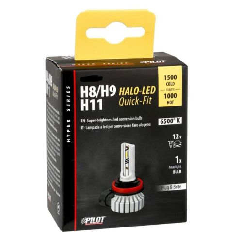 "Kit de conversion Halo Led Hyper Series 12V - (H8/H9/H11) - 15W - PGJ19-X - 1 pcs - Boîte Super luminosité. Les lumens dépassent les ampoules halogènes, tandis que la répartition de la lumière correspond aux ampoules d'origine. Installation facile sans modifications des lampes. Puces LED spéciales de dernière génération. Lumière vive extraordinaire, longue durée de vie. Dissipation thermique sans ventilateur. Technologie froide, sans besoin de ventilation ni de dissipateurs thermiques supplémentaires."