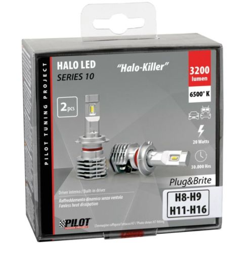 "• 9-32V Halo Led Série 10 Halo Killer - (H8-H9-H11-H16) - 20W - PGJ19-X - 2 pcs - Boîte • Super-luminosité. Les lumens dépassent les ampoules halogènes, tandis que la distribution lumineuse correspond aux ampoules d'origine. • Installation facile sans aucune modification des lampes. • Puces led spéciales de dernière génération. • Lumière brillante extraordinaire, longue durée de vie. • Dissipation thermique sans ventilateur. • Technologie froide, sans besoin de ventilation ni de dissipateurs thermiques supplémentaires. •Longue durée de vie (30.000 heures). NON APPROUVÉ POUR UNE UTILISATION SUR ROUTE. Ces ampoules ne sont pas homologuées pour la route et doivent être utilisées à des fins décoratives, pour la compétition, le circuit et le tout-terrain uniquement."