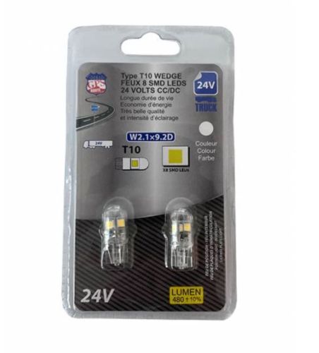 Ampoule LED 24V wedge T10 blanc 4LED 480Lumen (2pcs)