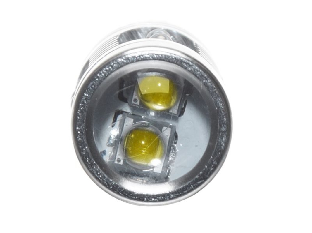 "Ampoule LED T10/T15/W16W très lumineuse, compatible avec les douilles d'origine. Cette ampoule est équipée de 10 LED de 5 W, équivalentes à une ampoule à incandescence de 25 W. À titre de comparaison, une ampoule T10 classique ne consomme que 5 W. De ce fait, son éclairage est nettement plus intense. Grâce à ses deux LED de chaque côté, elle illumine l'ensemble du réflecteur, et aux deux LED situées à l'avant, elle projette un faisceau lumineux puissant. • La puissance nominale de 50 W correspond à la consommation réelle des LED, qui est de 4,5 W. • Cette consommation élevée peut fausser le contrôle des feux sur la plupart des modèles. En cas d'erreur, l'ajout de résistances externes peut s'avérer nécessaire. • Ces ampoules peuvent également être utilisées sur les véhicules non équipés d'un contrôle des feux. • Il est déconseillé d'installer cette ampoule en même temps qu'une ampoule halogène, car elle ne supporte pas la forte chaleur. Température de couleur : 2800K Consommation : 4,5 W Équivalent : ampoule à incandescence de 25 W Disposition des LED : 4 groupes de 2 LED sur les côtés, 2 LED à l’avant LED CREE 10x5W Dimensions : Longueur : 46,0 mm Diamètre : 13,0 mm"