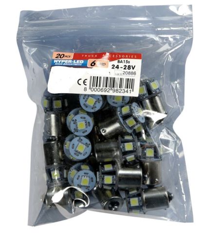 Ampoule led blanc BA15S/24V "Hyper-led" 6-ledSMD (20pc)