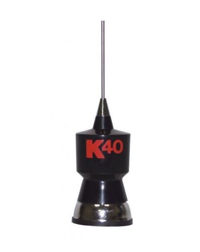 "K40 la vraie l'originale made in USA Fixation par pince et blocage par 2 vis BTR sous le pied de l' antenne. Système de démontage rapide quart de tour. Bande passante : 26 / 28 Mhz Impédance : 50O Longueur coaxial : 5 m - RG 58 Hauteur : 1,42 M"