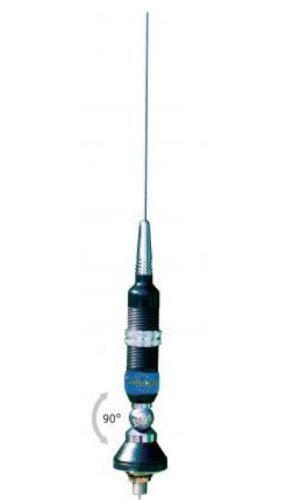"•Type : 7/8 wave • SWR : 1,1/1 (adjustable) • Gain : +5 dBi • Max. power : 500 W (PEP) • Band width and channels : 2400 KHz (240 ch) • Weight : 0,250 kg • Lenght : 1550 mm • Base : Type N • Boring diameter : 13 mm • Whip : Steel/Carbon • Câble 4m + pied de montage inclus "