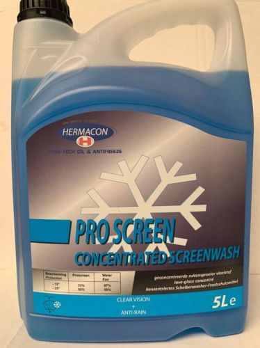 "Pro Screen concentrated -70° 5L Clear Vision + Anti-rain Un antigel lave-glace biodégradable, concentré avec d’excellentes performances nettoyantes. Enlève efficacement des insectes et de la graisse et laisse une odeur de citron agréable après pulvérisation. Répond aux normes les plus sévères et n’attaque pas la laque, les caoutchoucs et les polycarbonates (phares). Ce produit doit être dilué avec de l’eau. Couleur bleue."