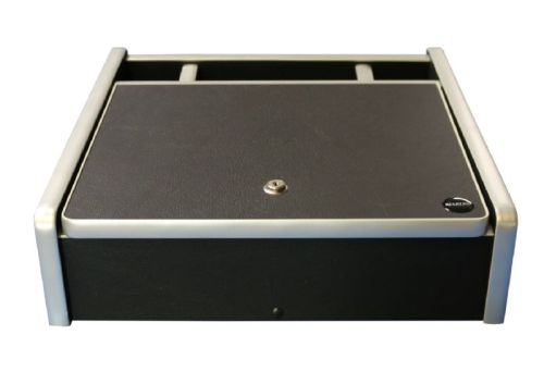 "• Armoire console centrale universelle • Contreplaqué de peuplier laminé avec motif cuir noir, verrouillable + 2clefs ! • Largeur 43,6cm x Profondeur 44cm x Hauteur 12cm"