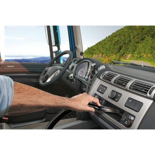 Aspirateur - 24V - 100W Le moteur 100W a une capacité d'aspiration jusqu'à 4000 Pa. Prise allume cigare universelle. Câble long (5 m) Avec filtre amovible pour une vidange facile. Accessoires inclus. Entièrement accessoirisé Buse fine Grande buse Jonction Brosser Rallonge souple de 55 cm