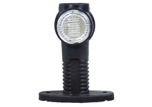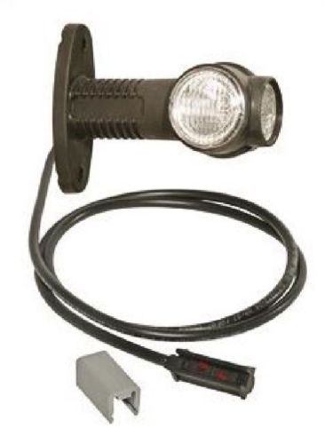 "Feu de gabarit, entièrement en caoutchouc, modèle court droit. LED 24 V, rouge, blanc et orange. Verre clair en polycarbonate antichocs. Doté d'un câble, disponible en diverses longueurs et avec différents branchements. Homologation ADR/GGVS. IP69"