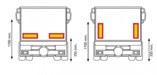 Couleur Rouge/orange Usage Panneaux camions & remorques Type Autocollant Côté montage Arrière Matériaux Autocollant Longueur mm 565 mm Hauteur mm 196 mm Homologation ECE 70.01 Emballé par 1 jeu (2pièces)