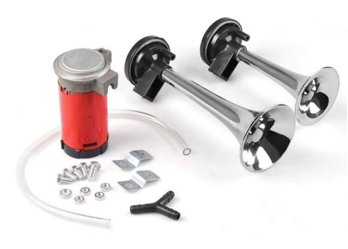 Avertisseur chromé 2 avertisseurs/1ton 22cm/17cm + compres