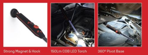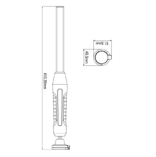 "2 in 1 LED Inspection Lamp Rechargeable Illumination Angle of 360° Integrated Dimming Switch (10% - 100%) Main Lamp: 800 Lumens Rated IP65, IP67, IK08 Polycarbonate / ABS Material 3.7V 2500mAh Li-Ion Battery Magnetic Base and Hook USB Charger Cable Battery Display 20 Hours Battery Life at 10%. 2.5 Hours Working Time at 100%. Operating Temp: -10° to +45°"