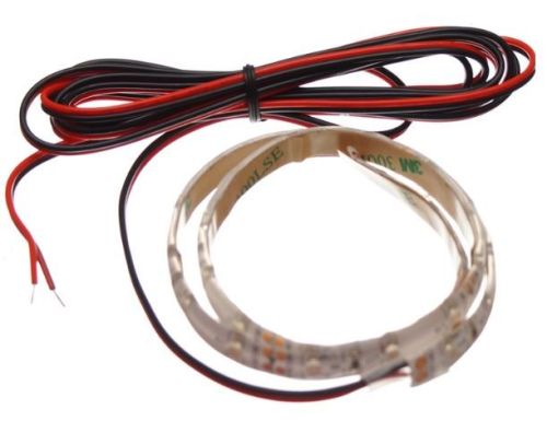 "Une bande LED flexible, résistante aux éclaboussures et autocollante avec un fil de 2 mètres. La bande est connectée directement à 24 V, soit à une batterie, soit à un transformateur d'alimentation / alimentation 24 V CC approprié. Le ruban adhésif double de 3M vous permet un montage sûr sur des surfaces métalliques, plastiques et peintes. Vous ne devez pas les monter sur du bois brut. Nettoyez les surfaces avant l'application. • Largeur 10,0 mm • Hauteur 2,0 mm • Longueur 1000,0 mm"