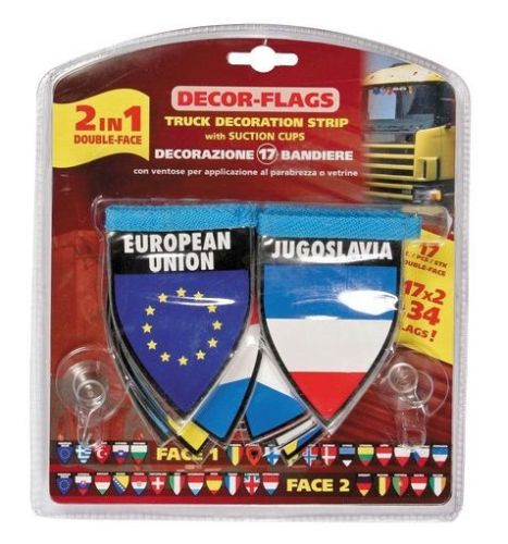 Bannière 17 drapeaux Europe recto-verso + ventouses