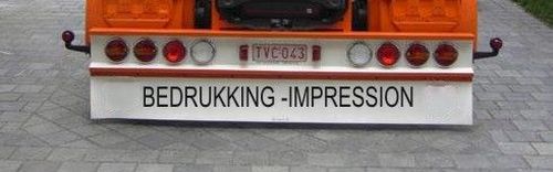 Caoutchouc souple / en 1 pièce (= 238cm x 35cm) / Latte de montage inclus ! Impression possible en 1 couleur - Veuillez envoyer votre dessin. Attention: c'est possible qu'il y a des frais supplémentaire pour l'impression des logos de sociétés.