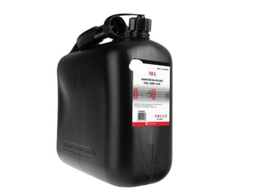 "Dimensions : 330 x 160 x 310 mm, Le bidon est doté d'une poignée de transport en partie haute et d'un entonnoir flexible qui se visse sur le récipient, Application : carburants, huiles, eau, Poids unitaire 0,65kg"