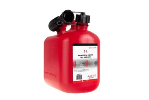 "Dimensions : 250 x 130 x 250 mm, Le bidon est doté d'une poignée de transport en partie haute et d'un entonnoir flexible qui se visse sur le récipient, Application : carburants, huiles, eau, Poids unitaire 0,65kg,"