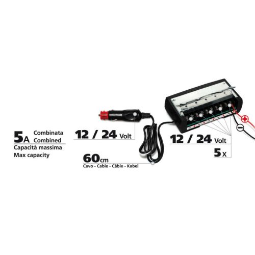 Boîte de distribution d'alimentation 5 voies 12V/24V 5A