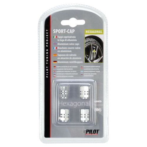 Bouchons de valve "Hexagonal" aluminium argent (4pièces)
