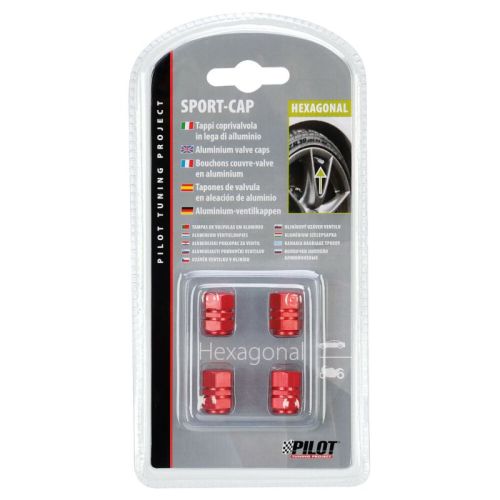 Bouchons de valve "Hexagonal" aluminium rouge (4pièces)