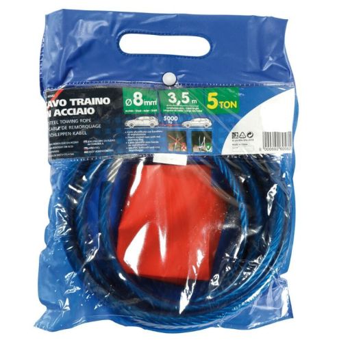 "• Câble de remorquage en acier kg 5000 • Diamètre acier 8 mm. Longueur de corde 3,5 m. • Corde recouverte de plastique"