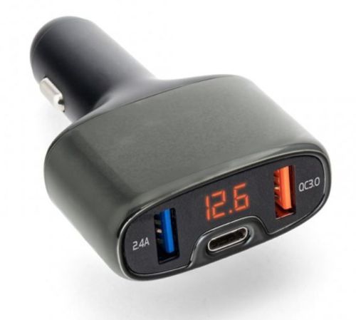 " Adaptateur de charge USB avec indication de tension • Port de charge USB standard de 2,4 A (même adapté pour charger votre tablette) • Port USB standard Quick Charge 3.0 (chargeur rapide pour les appareils appropriés - consultez le manuel de votre appareil) • Port de charge 1A USB type-C • Protection contre la sur tension • Protection court circuit • Finition électrolytique élégante • Entrée 12 ~ 24V • Puissance totale: 32W"