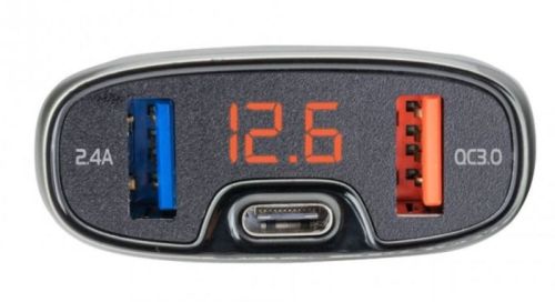 Caliber chargeur 2xUSB + 1x type-C+ mètre de tension 12V/24