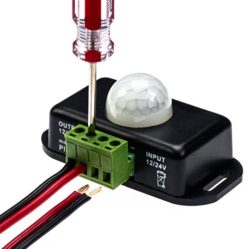 "PIR signifie Passive Infrared Sensor et est un capteur électronique qui mesure la lumière infrarouge (IR) émise par les objets dans son champ de vision. C'est une technologie souvent utilisée pour les produits du secteur de l'alarme et de la sécurité. Ce capteur PIR est destiné à l'éclairage intérieur, à la fois 12 et 24 volts et peut gérer un maximum de 72 watts. L'appareil dispose d'une minuterie pouvant être réglée jusqu'à 10 minutes, ce qui signifie que l'éclairage reste allumé pendant 10 minutes après la détection du dernier mouvement. Caractéristiques: Technologie IRP 12-24V Max 72W Minuterie (max 10 min)"