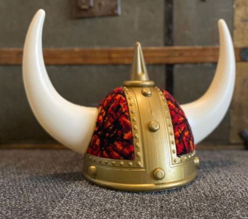 Casque viking en peluche rouge H25cm
