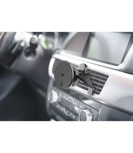 "Le support voiture sans fil MAG Qi2 est doté de la technologie Qi2 et compatible avec l'écosystème MagSafe. Il offre une charge magnétique sans fil rapide et sûre jusqu'à 15 W. L'anneau magnétique inclus permet la charge Qi2 sur tous les appareils compatibles et garantit une fixation stable et précise. Grâce à sa double position d'installation, il peut être fixé au pare-brise avec une ventouse ou aux grilles d'aération grâce au support universel, offrant polyvalence et stabilité en toute situation. Le MAG AIRVENTS & DASH est le choix idéal pour ceux qui recherchent un support voiture fonctionnel et sécurisé avec charge magnétique sans fil. DIMA, anneau magnétique et câble USB inclus. • Charge magnétique sans fil Qi2 jusqu'à 15 W : le support voiture est compatible avec l'écosystème MagSafe pour une charge rapide, sûre et sans fil. • Anneau magnétique inclus : permet la charge Qi2 sur tous les appareils compatibles et garantit une fixation stable et précise. • Double mode d'installation : fixation polyvalente avec une ventouse pour le pare-brise ou un clip universel pour les grilles d'aération, adaptable à tous les véhicules. • Stabilité et sécurité maximales : Conçu pour une prise en main sûre, évitant les vibrations et les chutes pendant la conduite. • Accessoires complets inclus : DIMA pour un positionnement précis, anneau magnétique et câble USB inclus."