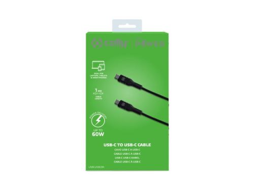 "Câble Celly en PVC équipé de 2 connecteurs USB-C, idéal pour charger les MacBook, Notebook, smartphones et tablettes. Charge jusqu’à 60W grâce à sa technologie de charge rapide Power Delivery. Le câble a une longueur d’un mètre et est compatible avec la synchronisation de données. Câble Celly en PVC équipé de 2 connecteurs USB-C Charge jusqu’à 60W grâce à sa technologie de charge rapide Power Delivery Longueur 1 mètre"