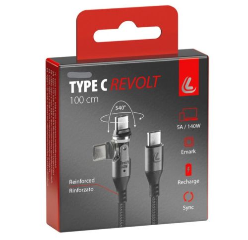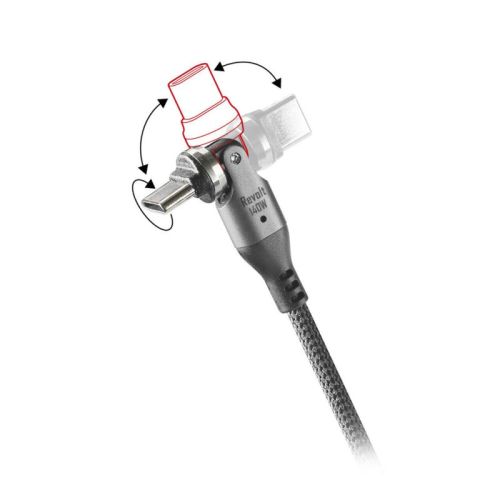 Câble USB Type-C > Type-C avec connecteur multidirectionnel - 100 cm Homologué Emark - Renforts au niveau du collier et du câble - Courant de transfert : 5 A - 140 W
