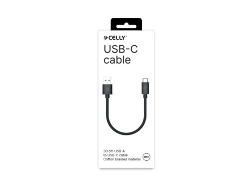 Celly Cable de charge noir coton tressé USB-A->USB-C (30cm)