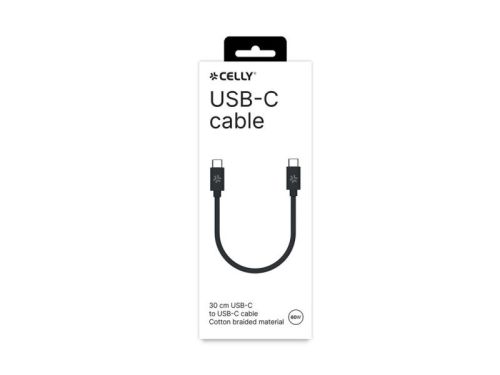 Celly Cable de charge noir coton tressé USB-C->USB-C (30cm)