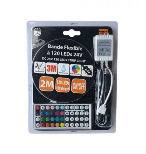 120 SMD Leds / 24V / Etanche / Autocollant / Longueur : 200 cm - on peut le couper chaque 10cm / Plusieurs couleurs (Rouge-vert-bleu-orange-mauve-jaune-blanc...) / Avec télécommande / Plusieurs fonctions