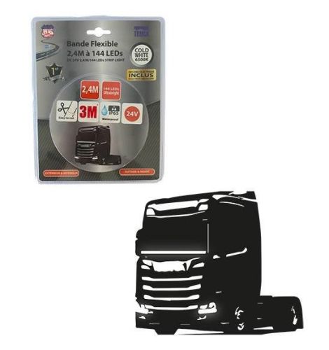 BLANC FROID / 144 SMD Leds / 24V / Etanche IP65 / Autocollant / Longueur : 240 cm - on peut le couper chaque 10cm