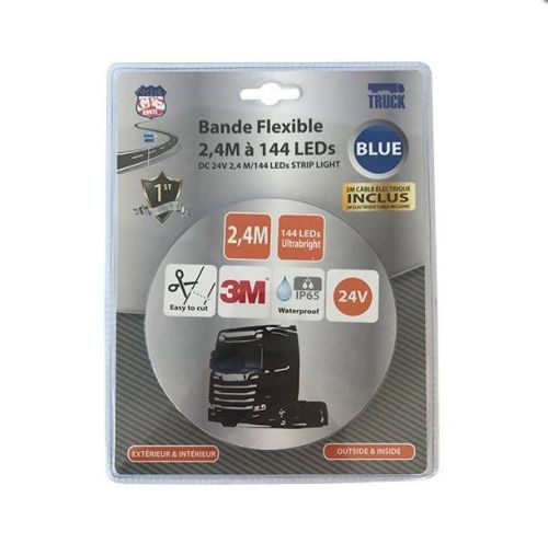 BLEU / 144 SMD Leds / 24V / Etanche IP65 / Autocollant / Longueur : 240 cm - on peut le couper chaque 10cm