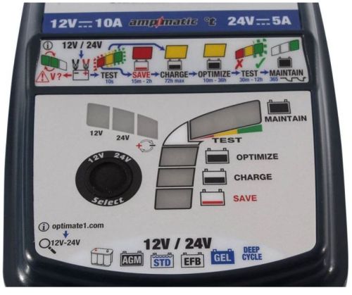 "Le chargeur de batterie 10A 12V / 5A 24V le plus avancé au monde! OptiMate 7 12V-24V convient parfaitement pour les batteries de démarrage et à cycle prolongé 12 V et 24 V haute performance, qui nécessitent une charge contrôlée à la bonne température et une maintenance longue durée sans supervision en toute sécurité. PARTICULARITÉS : Conçu pour les composants électroniques fragiles : Le programme SAVE a été conçu pour un démarrage basse tension entièrement automatisé en toute sécurité (à partir 0,5 Volts) et une récupération par impulsions de batteries fortement déchargées connectées à des composants électroniques très fragiles, comme par ex. les aéronefs légers et les équipements industriels. Protection contre les erreurs de sélection de tension : Si l’OptiMate 7 12-24 V est positionné sur 24 V et qu’une batterie 12 V est branchée, celui-ci préviendra directement qu’une basse tension est détectée et que la charge est impossible. L’utilisateur doit confirmer que la tension nominale de la batterie connectée est de 24 V avant que le mode de récupération ne s’active. •AMPÉRAGE DE CHARGE: 10A @ 12V / 5A @ 24V (Ampmatic) •UTILISATION: en intérieur/extérieur (température la plus basse : -40 °C). •RÉCUPÉRATION: démarrage basse tension à partir de 0.5 V (12 V) + récupération par désulfatation en 1 étape. •IDÉAL POUR: batteries STD, AGM et GEL 12 V (3 – 400 Ah) / 24 V (1-200Ah) •ENTRÉE: globale (100 – 240 V 50 – 60 Hz), haut rendement (certification CEC), scellée hermétiquement. •STYLE: boîtier résistant aux intempéries avec fixations murales, câble d’alimentation CA de 180 cm et câble de charge de 180 cm avec connecteur SAE. Câble de batterie étanche et ensemble de pinces pour batterie standard inclus. SÉCURITÉ: aucun risque de surcharge. Totalement sûr pour l’électronique du véhicule. Suppression des étincelles. Maintenance longue durée de batterie en toute sécurité. Extinction automatique en cas de court-circuit ou si la batterie est débranchée. •Garantie de remplacement limitée de 3 ans. "