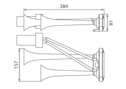 Claxon 2-ton 28cm + 36cm 12V (compresseur électrique)