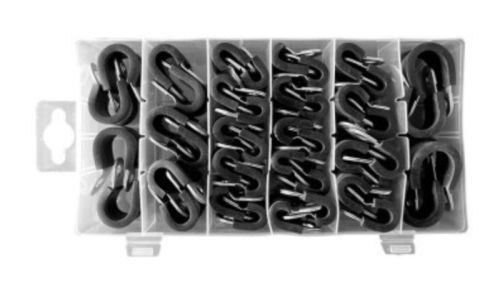 "Assortiment de colliers de serrage. Les colliers de serrage sont en acier inoxydable et recouverts de caoutchouc. Les colliers sont principalement utilisés pour les tuyaux, les flexibles, etc. Contenu: 1/4 inch 20pcs 5/16 inch 8pcs 3/8 inch 6pcs 1/2 inch 4pcs 5/8 inch 4pcs"
