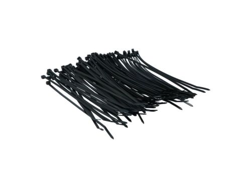 "Colliers de serrage universels en plastique noir. Longueur 200 mm, largeur 3,6 mm. Avec une fermeture en plastique et une languette de verrouillage incurvée en plastique pour une insertion facile. Résistants aux UV, à la traction et à des températures de -40° à +85°C. Par 100 pièces. • Longueur 200 mm, largeur 3,6 mm • Languette de verrouillage incurvée en plastique pour une insertion facile • Résistants aux UV et à des températures de -40° à +85°C"