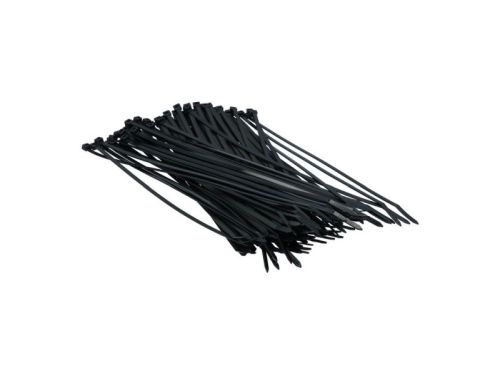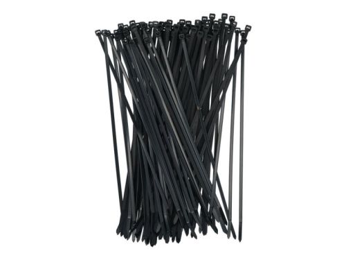 "Colliers de serrage universels en plastique noir. Longueur 300 mm, largeur 4,8 mm. Avec une fermeture en plastique et une languette de verrouillage incurvée en plastique pour une insertion facile. Résistants aux UV, à la traction et à des températures de -40° à +85°C. Par 100 pièces. • Longueur 300 mm, largeur 4,8 mm • Languette de verrouillage incurvée en plastique pour une insertion facile • Résistants aux UV et à des températures de -40° à +85°C"