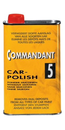 "Commander 5 Car Polish élimine les dépôts et redonne à la peinture un éclat terne. Élimine les imperfections, petites rayures, brouillard de pulvérisation et dépôts industriels. Sans silicone et convient à tous les types de peinture. Contenu 500ml."