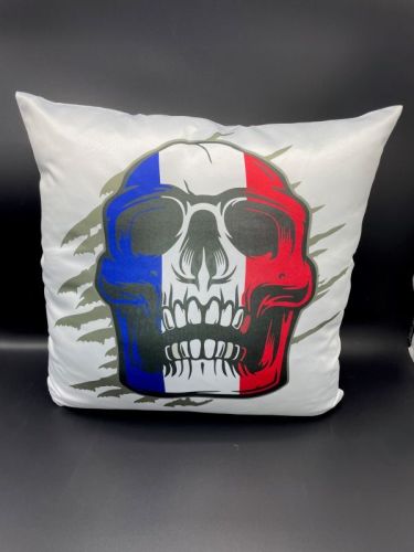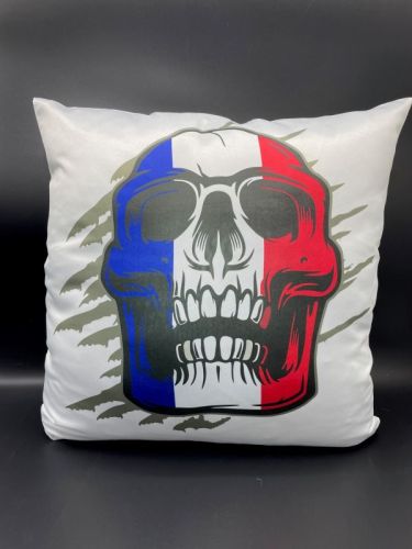 Coussin 45x45 cm blanc impres. têtemort France Delruestyle